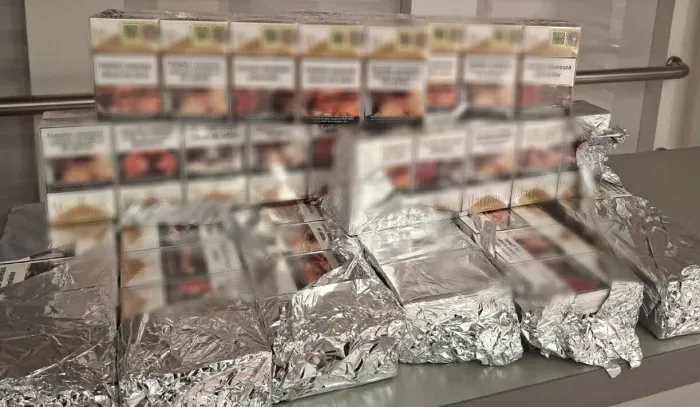 Potrivit responsabililor de la frontieră, țigările erau acoperite cu folii de aluminiu și nu au fost declarate. Pasagerul urma să zboare la Londra.