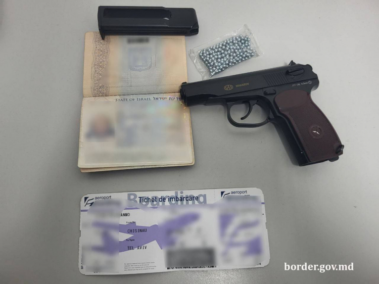 Astfel, s-a stabilit ca are in valiza un pistol pneumatic, aditional au fost descoperite incarcatorul si pachetul cu zeci de bile din metal. In acest context, a intervenit grupa operativa de la Sectorul Politiei de Frontiera Aeroportul International Chisinau pentru documentarea cazului si stabilirea tuturor circumstantelor.