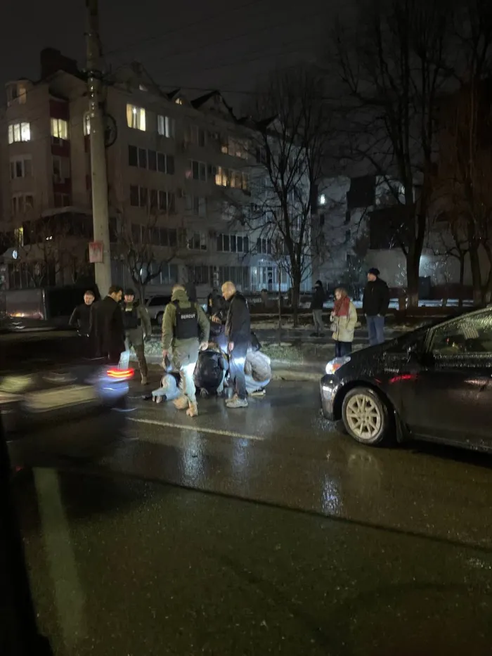 Din imaginile publicate de martori pe rețelele de socializare se vede o persoană întinsă la sol, în timp ce mai mulți trecători se apropie pentru a-i acorda primul ajutor.