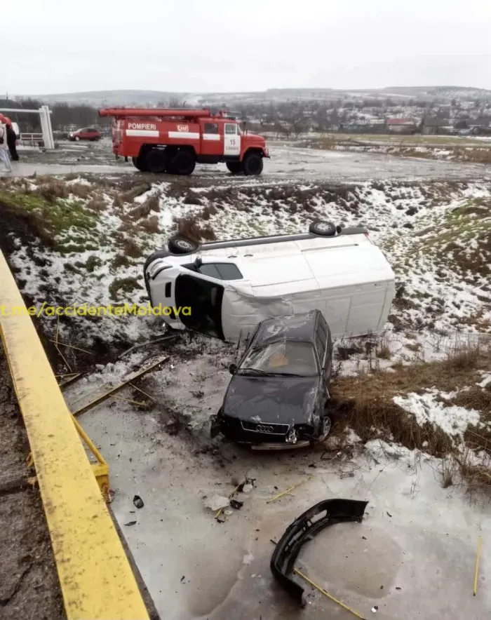 Un microbuz și o mașină au ajuns într-un șanț, în urma unui accident, la Ialoveni.