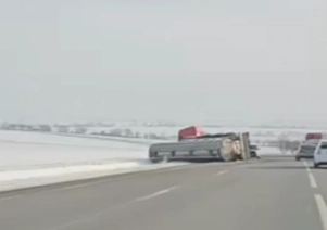 Șoferul camionului, un bărbat de 47 de ani, a pierdut controlul volanului, cisterna s-a decuplat și s-a răsturnat. Din fericire, aceasta era goală și nimeni nu a avut de suferit.