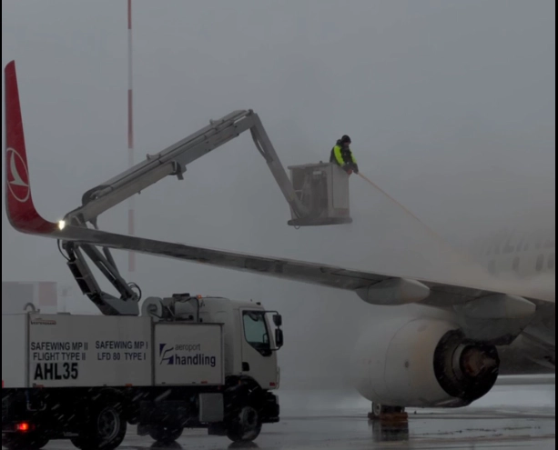 Procedura de degivrare este obligatorie înainte de decolare, fiind aplicată pentru îndepărtarea depunerilor de gheață și prevenirea formării acestora pe suprafețele avioanelor.