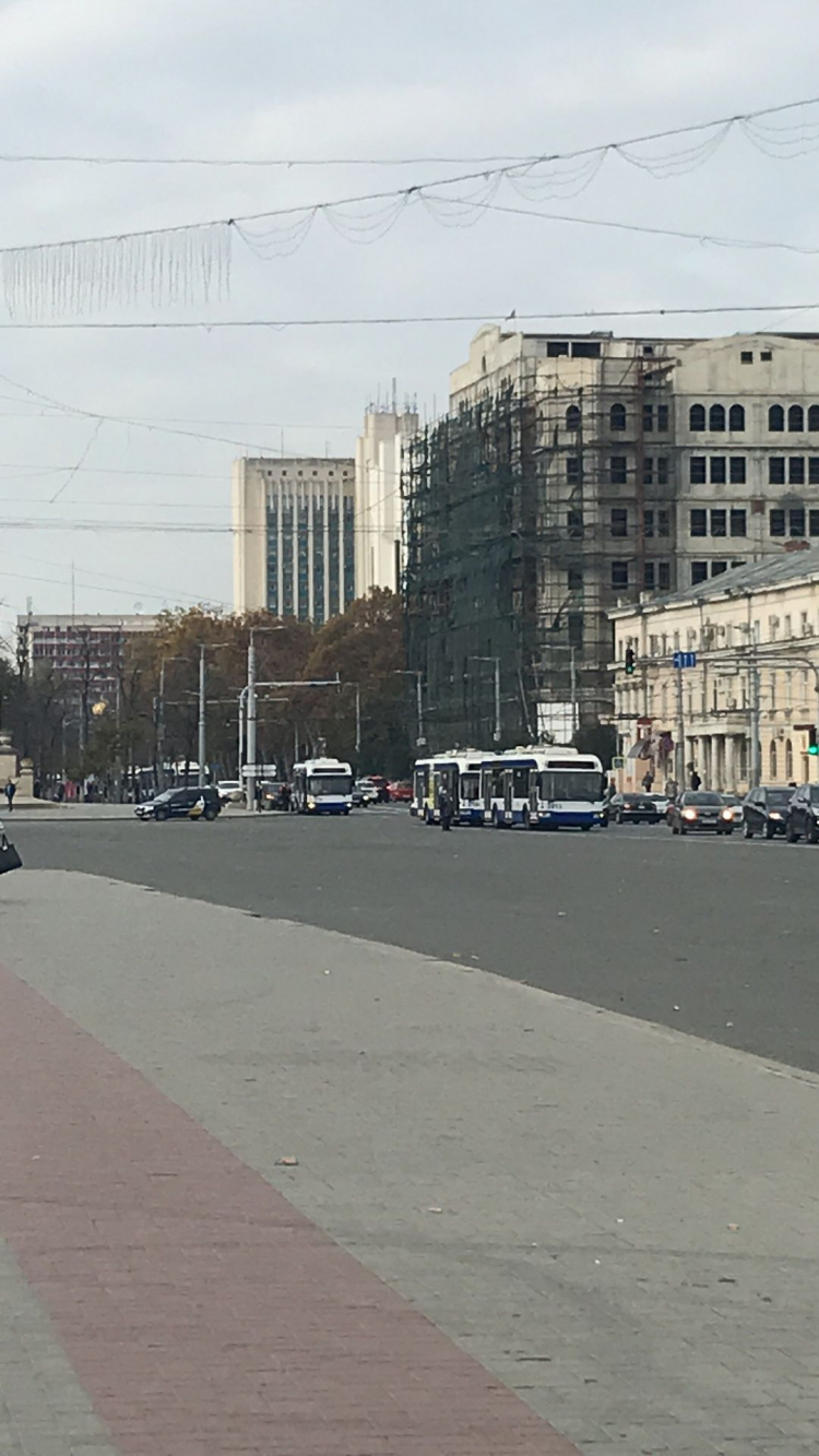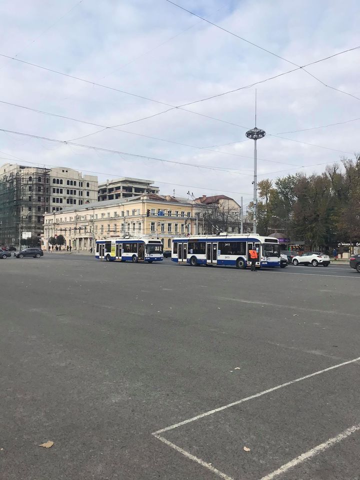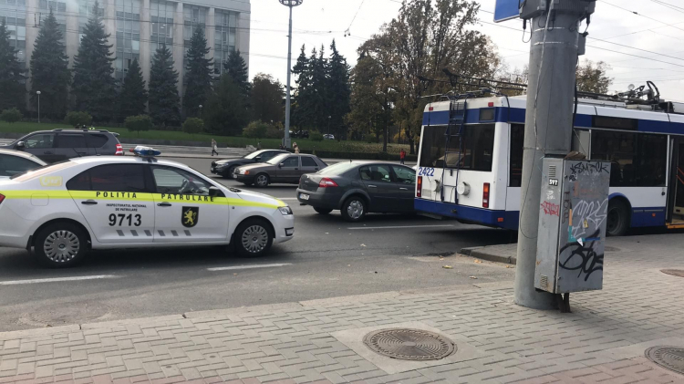 Rand imens de troleibuze in centrul capitalei. Vehiculele nu pot trece din cauza unei defectiune la reteaua de contact. In zona s-a format un ambuteiaj infernal.