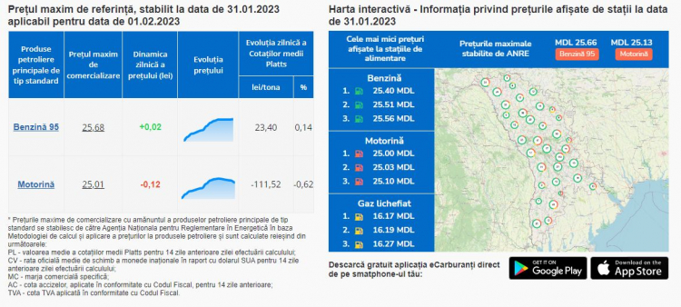 Potrivit Agentiei Nationale pentru Reglementare in Energetica, maine benzina va fi la pret de 25,68 lei pentru un litru, iar motorina va fi la pret de 25,01 lei pentru un litru.