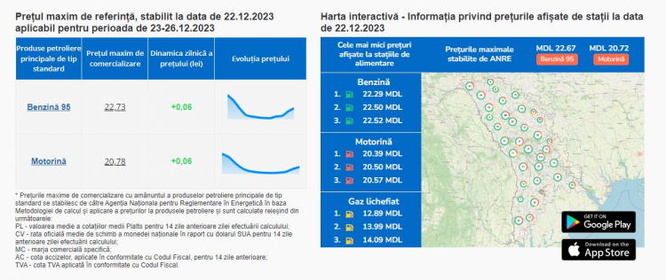 Potrivit Agentiei Nationale pentru Reglementare in Energetica, in weekend, dar si luni, benzina va fi la pret de 22,73 lei pentru un litru, iar motorina va fi la pret de 20,78 lei pentru un litru.