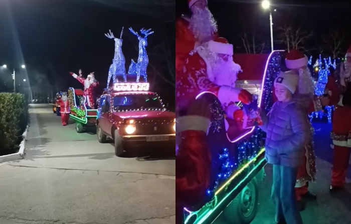 In Ajunul Craciunului, mai multi Mosi Craciuni si-au facut aparitia la o pensiune din Molovata Noua din Dubasari, spre bucuria copiilor.