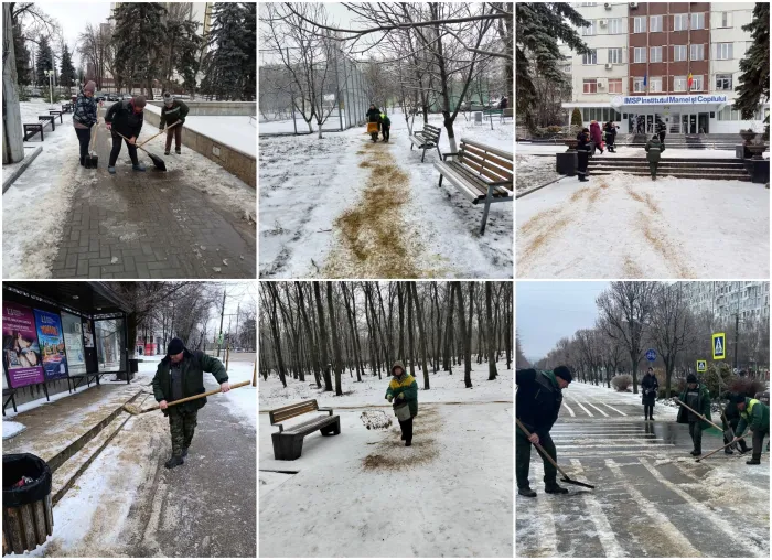 Primăria Chișinău informează că echipele serviciilor municipale sunt mobilizate non-stop pentru a asigura siguranța locuitorilor în contextul condițiilor meteo dificile. Atât lucrările mecanizate, cât și cele manuale de împrăștiere a materialului antiderapant și de curățare a stratului de gheață continuă în toate sectoarele capitalei.