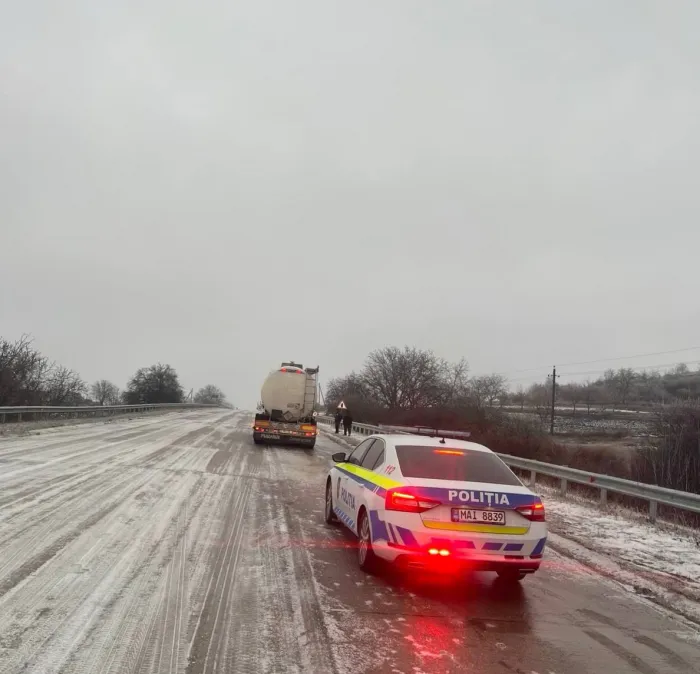 Potrivit poliției, pe șoseaua Corpaci-Hancăuți se circulă cu dificultate, iar carosabilul este foarte alunecos.