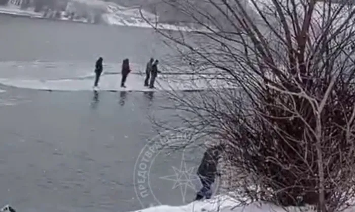 La un moment dat, marginea gheții a cedat, iar pescarii s-au trezit izolați pe o bucată desprinsă, dusă rapid de apă. Patru dintre ei au decis să sară în râu și au înotat spre mal, reușind să ajungă în siguranță.