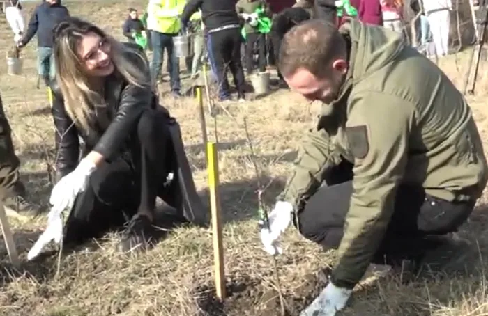 Cu mănușile pe mâini și înarmați cu unelte de muncă, voluntarii și minitrul Mediului de la noi, dar și cel român au plantat de la primele ore ale dimineții puieți pe un câmp din satul Sculeni din România.