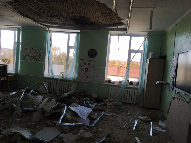 Banci si scaune daramate - asa arata clasa in care a cazut tavanul peste copiii din clasa I in scoala primara din satul Mereni, raionul Anenii Noi.