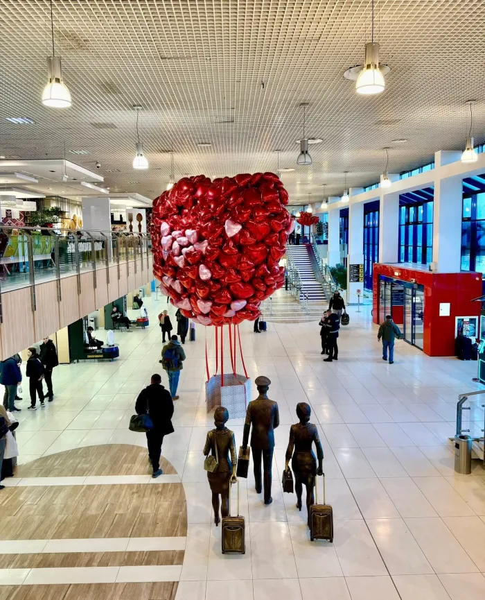 Multe inimioare plutesc astăzi, de Ziua Îndrăgostiților, prin Aeroportul Internațional Chișinău. Responsabilii aerogării au decorat încăperea cu elemente tematice, iar unii călătorii își fac fotografii înainte de zbor.