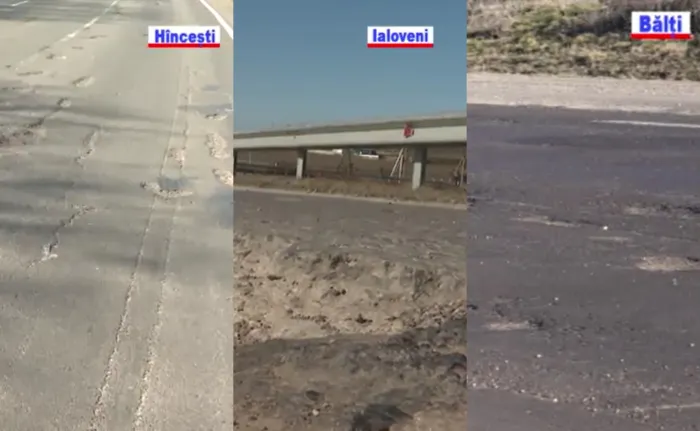 Elisa BOLDURATU, REPORTER PRO TV: „Aici, pe șoseaua Chișinău-Hîncești, șoferilor le este aproape imposibil să circule fără a ajunge cu roțile în gropi. Acestea sunt unele lângă altele, de diferite mărimi, și se întind pe porțiuni mari ale drumului.”
