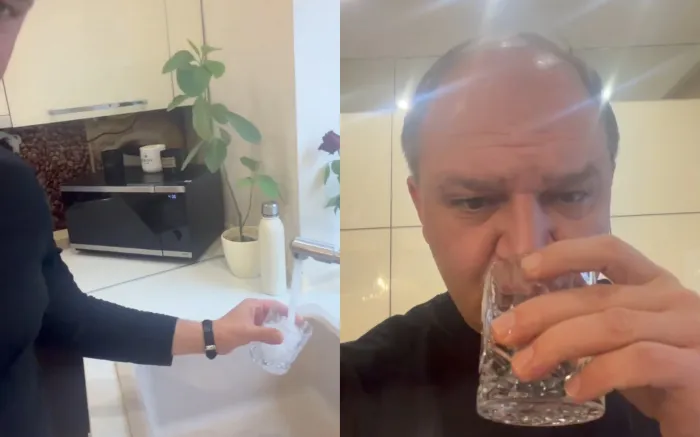 În acest context, edilul a filmat un video chiar din bucătăria sa, unde arată cum el personal consumă apă de la robinet.