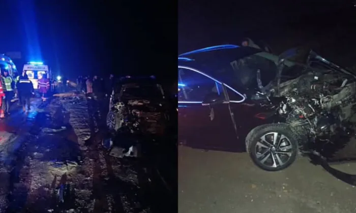 Un automobil, condus de un bărbat de 38 de ani, în care se aflau ca pasageri soția acestuia de 38 de ani, doi copii de 4 ani și un an, precum și o femeie de 65 de ani, s-a lovit cu o mașină condusă de un bărbat de 50 de ani, care avea un pasager, o femeie de 54 de ani.