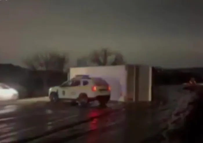 Un alt accident a avut loc pe strada Balcani. Un camion condus de un bărbat a derapat de pe carosabil. În urma incidentului, vehiculul s-a răsturnat și a blocat complet traseul.