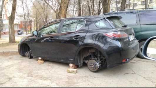 Hotii fac prapada in capitala, mai exact in sectorul Botanica unde soferul unei masini marca Lexus si-a gasit masina in parcare fara roti pe caramizi.