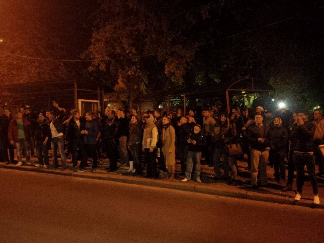UPDATE 21:01 Mai multi oameni au venit in fata blocului unde Usatai inchirieaza apartamentul si unde acum au loc percheziti. Acestia scandeaza intru sustinerea liderului PN.