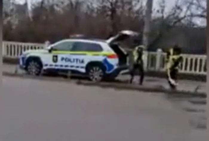 În imaginile devenite virale pe internet în această dimineață, se poate vedea cum trei polițiști de patrulare astupă gropile formate pe podul de pe strada Ismail.