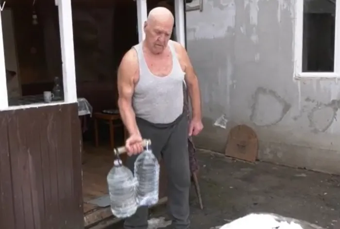 Bătrânul și-a confecționat singur echipamentul sportiv: două butelii cu apă de câte 7 kilograme au înlocuit ganterele, o unealtă de tractor a fost folosită în locul barei metalice, iar haltera o are de mai mult timp. Și-a așezat toate „instrumentele” la îndemână și a început exercițiile fizice.