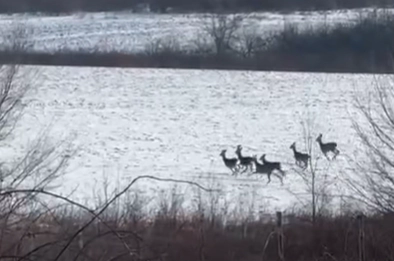 Mai multe căprioare au fost surprinse cum aleargă pe un câmp din apropierea satului Românești, în aria protejată a parcului Național „Orhei”.
