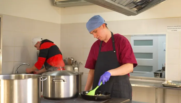 Muncesc în ateliere sau la bucătărie, au propriul job, salariu și sarcini clare în cadrul unei întreprinderi sociale din Bălți. Marina Cosma este croitoreasă. Spune că a reușit să obțină acest post de muncă în ciuda faptului că nu are o mână, iar în timp, munca la atelier, i-au oferit încredere și siguranță.