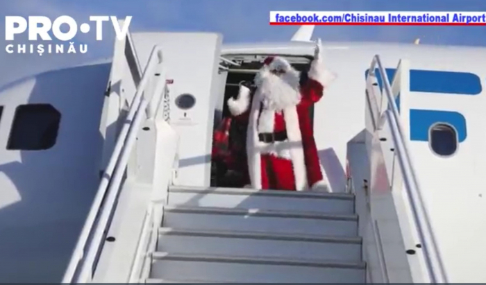 Mos Craciun a aterizat astazi pe Aeroportul International Chisinau. Acesta a fost asteptat de zeci de copii, carora le-a impartit cadouri.