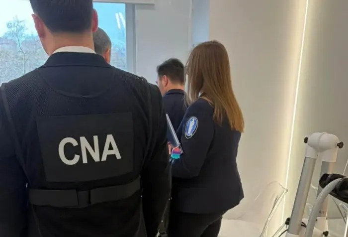 Dina MUNTEANU, REPORTER PRO TV: „Perchezițiile au avut loc în această clădire din spatele meu, unde se află și salonul în care activa angajata cu diplomă falsă. Potrivit avocatului salonului, femeia a recunoscut ca lucrează în baza un act fals și a oferit o copie a acestuia ofițerilor CNA.”