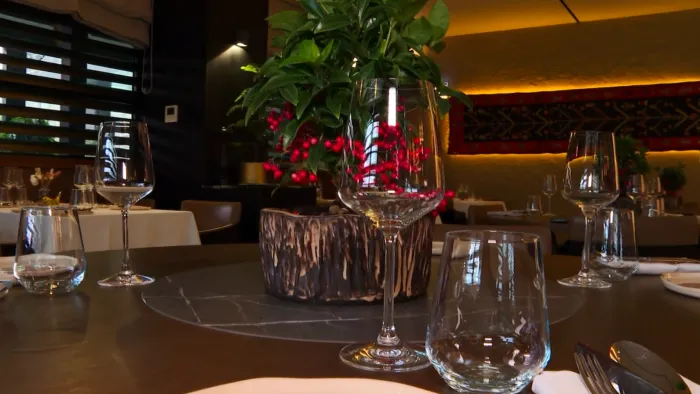 Georgeta CARASIUCENCO, REPREZENTANTA LOCALULUI: „Pentru cina romantică avem un meniu special. Welcome drink-ul este spumantul adorat 9 muses, apoi servim stridii, cu o textură fină de sfeclă și zmeură. Apoi avem un veloute cu topinambur și vanilie, servit cu Viorica.”