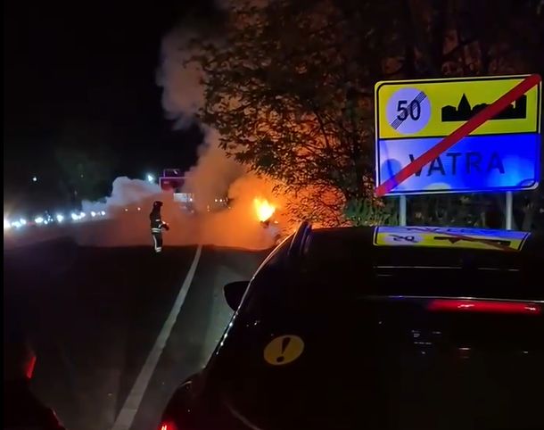 O mașină a ars complet aseară la intrarea în orașul Vatra, după ce a lovit o grămadă de cotileți aflată pe marginea drumului. Șoferul era în stare de ebrietate, spune poliția. Din fericire, nimeni nu a avut de suferit.