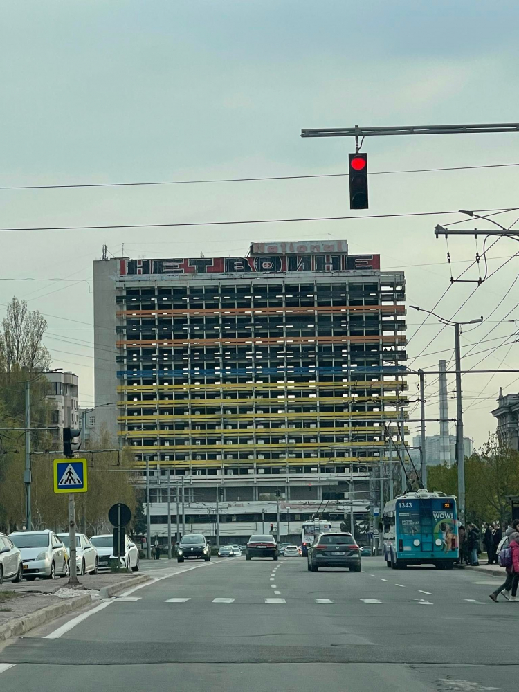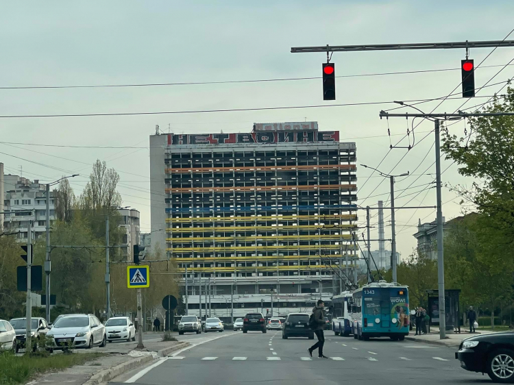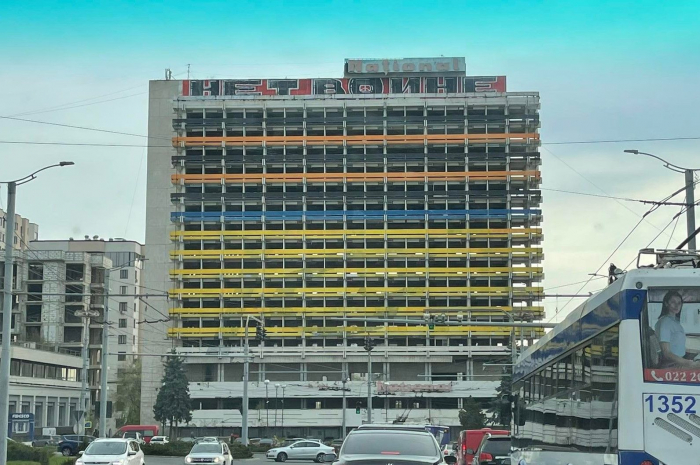 Pe 26 februarie, fostul Hotel National a fost desenat in culorile drapelului ucrainean de catre cativa tineri din capitala in semn de protest fata de razboiul din tara vecina, dar si pentru a-si arata sprijinul si solidaritatea pentru poporul ucrainean.