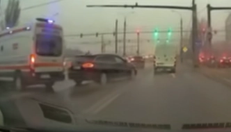 Din imaginile video se vede cum ambulanța derapează și este aproape de a se ciocni cu o altă mașină.