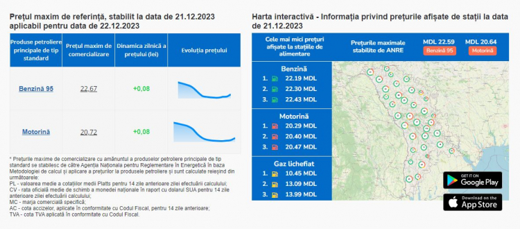 Potrivit Agentiei Nationale pentru Reglementare in Energetica, maine benzina va fi la pret de 22,67 lei pentru un litru, iar motorina va fi la pret de 20,72 lei pentru un litru.