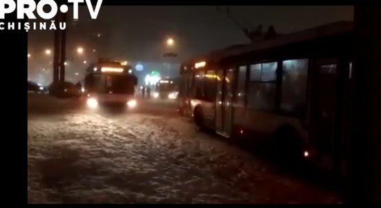 Mai multe troleibuze din capitala au ramas blocate pe strazi, dupa ce ninsoarea si gheata a pus stapanire pe carosabil.