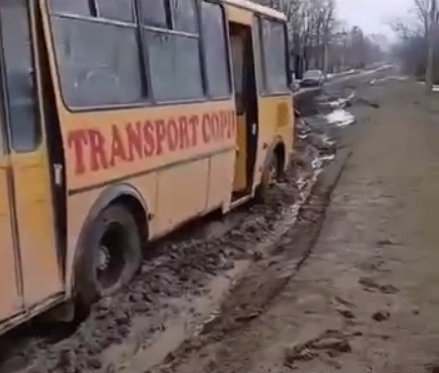 Un autobuz cu elevi a fost blocat la Cantemir din cauza drumului cu noroi.