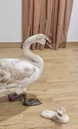 Proprietarul a primit lebăda în locuință, iar aceasta s-a plimbat nestingherită. Chiar și după ce a fost „rugată politicos să se întoarcă în habitatul său natural” , pasărea a refuzat să plece, părând decisă să rămână.