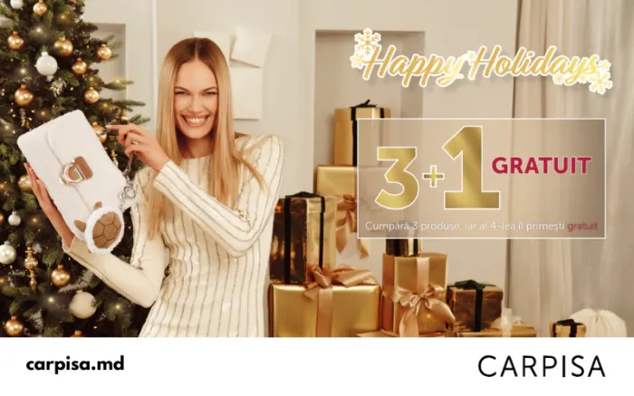 În ajun de Crăciun, când căutarea cadoului potrivit poate deveni o adevărată provocare, CARPISA vine cu o soluție simplă, practică și avantajoasă: promoția 3+1 gratuit. Cumperi trei produse din orice categorie, iar al patrulea îl primești CADOU. Promoția este valabilă la întreaga gamă de produse, atât în magazine, cât și online, inclusiv pentru toate modelele de valize.