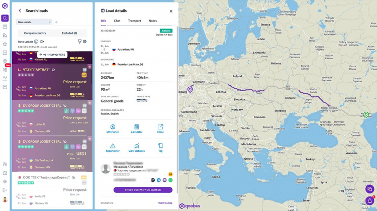 Un lucru important de mentionat este ca orice companie inregistrata, fie ea de transport, detinatoare de marfa sau casa de expeditie, este verificata prin Qcheck - serviciul Qoobus care iti pune la dispozitie date despre rapoartele financiare ale companiilor, dosare in judecata, licente, asigurari si are scopul de a-ti oferi siguranta unor colaborari transparente.
