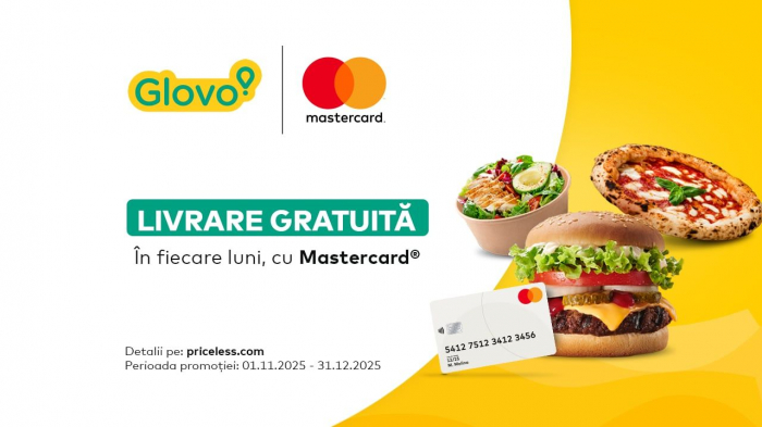 Reducerea se aplică automat tuturor celor care aleg Mastercard ca metodă de plată – fie folosind cardul deja salvat în aplicația Glovo, fie adăugând unul nou.