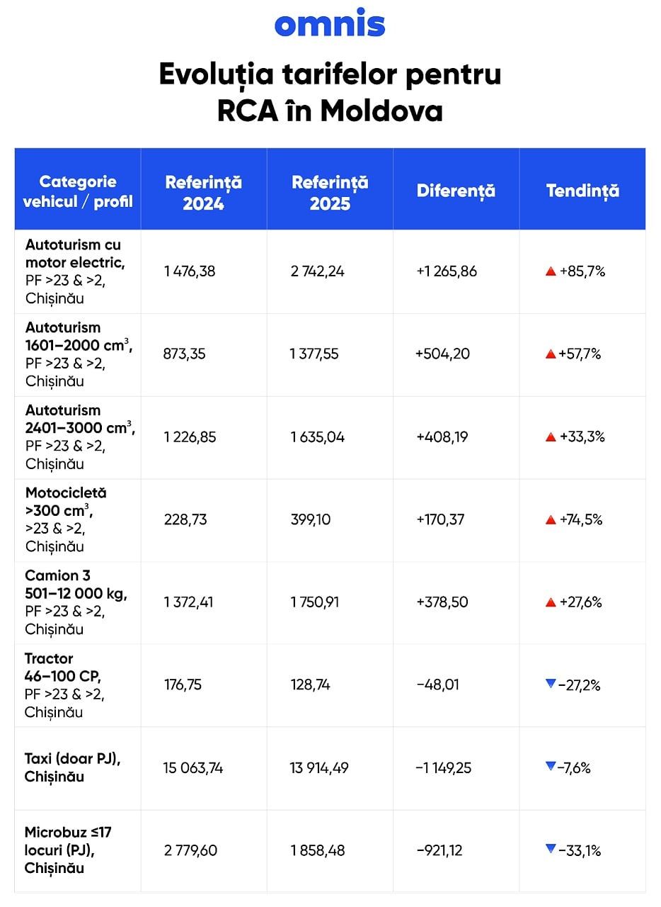 Începând cu 25 noiembrie 2025, șoferii din Republica Moldova trebuie să se pregătească de modificări considerabile la tarifele RCA și Carte Verde. Scumpirile asigurării RCA vor fi resimțite în mod special de către tineri și posesorii automobilelor electrice. În cazul asigurării Carte Verde, se așteaptă o creștere de peste 50% a prețurilor. Asta înseamnă că mulți șoferi care circulă frecvent peste hotare, vor fi afectați semnificativ de noile prețuri.