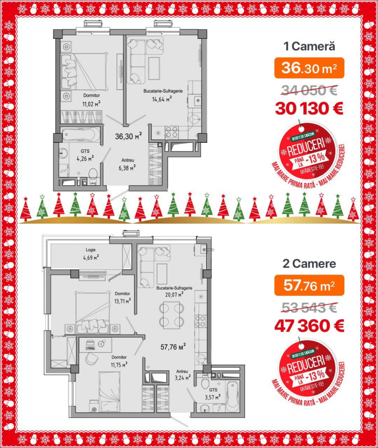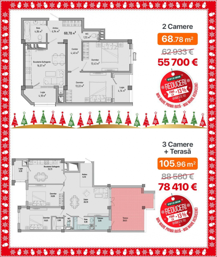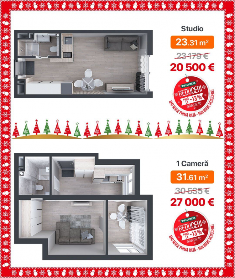 Mai mare prima rata - mai mare reducere. Alege apartamentul visurilor tale - cele mai bune preturi cu prilejul sarbatorilor de Craciun!