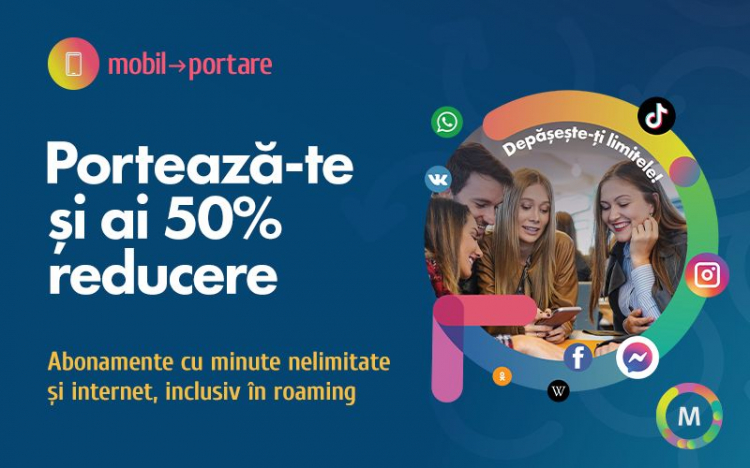 Ce-ar fi să plătești doar 50% pentru un abonament de telefonie mobilă care îți oferă tot ce ai nevoie? Simplu: treci la Moldtelecom, păstrează-ți numărul tău de telefon și bucură-te de minute naționale nelimitate, până la 245 GB internet, minute internaționale pentru a rămâne conectat cu cei dragi din străinătate, și roaming pentru călătorii fără griji.