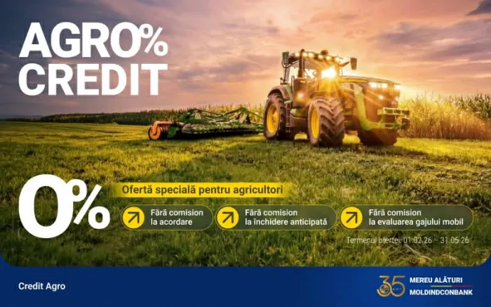 Pământul are nevoie de grijă. Iar agricultorii – de susținere la momentul potrivit. Pentru cei care muncesc zi de zi pentru roade bogate, Moldindconbank lansează oferta specială AGRO la credite, valabilă în perioada 1 februarie – 31 mai 2026.