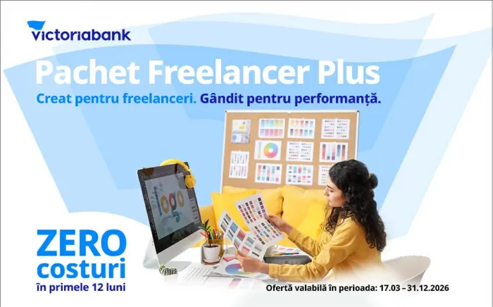 Pachetul „Freelancer Plus” este disponibil în toate unitățile Victoriabank. Oferta este valabilă până la 31 decembrie 2026.