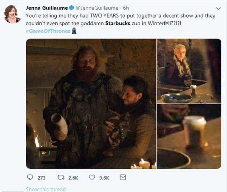 Initial, internautii au crezut ca este vorba despre un pahar cu cafea de la Starbucks. Ulterior, HBO a raspuns cu o gluma, precizand ca: „Latte-ul care apare in episod a fost o greseala. Daenerys comandase un ceai de plante”.