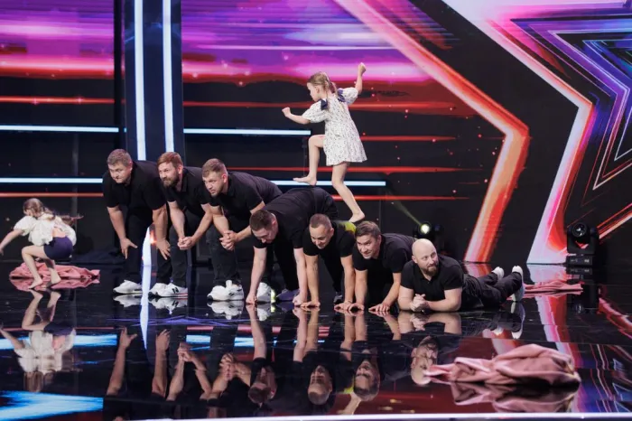 Studio Acrobatic Show din Chișinău a făcut spectacol total pe scena „Românii au talent”. Fetițele, cu vârste cuprinse între 6 și 12 ani, au dansat alături de tații lor și au primit patru de „Da” din parte ajuraților, scrie protv.ro