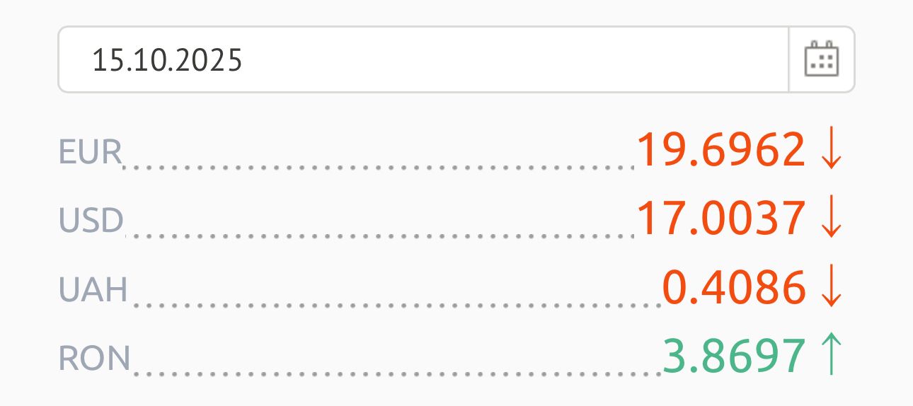 Leul românesc valorează 3,86 lei, iar o hrivnă ucraineană costă 40 de bani.
