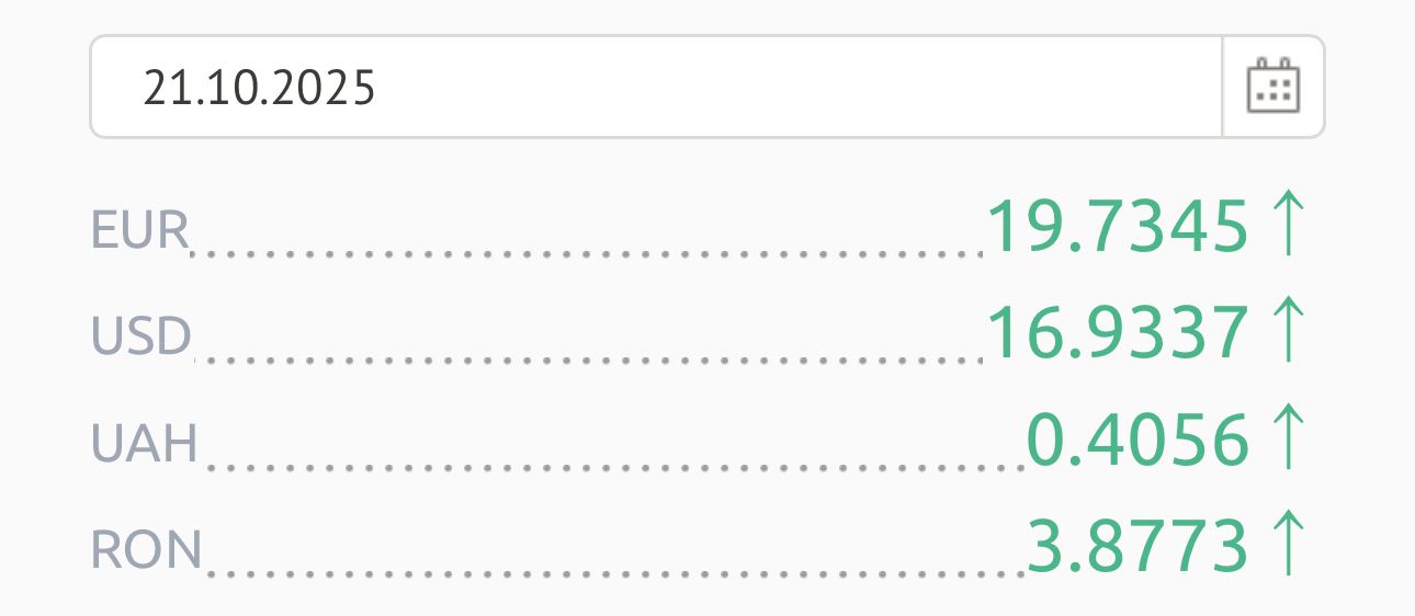 Banca Națională a Moldovei a stabilit pentru un euro un curs valutar de 19,73 lei, iar pentru un dolar 16,93 lei.