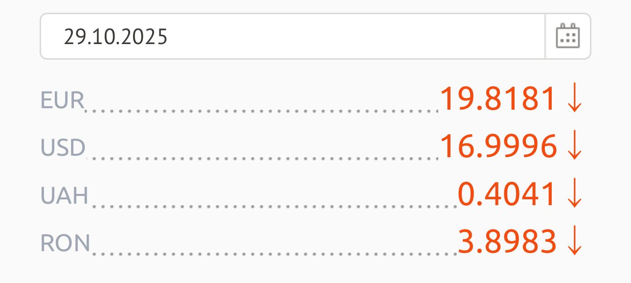 Banca Națională a Moldovei a stabilit pentru un euro un curs valutar de 19,81 lei, iar pentru un dolar 16,99 lei.