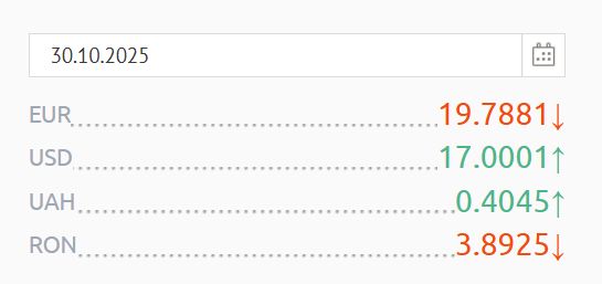Banca Națională a Moldovei a stabilit pentru un euro un curs valutar de 19,78 lei, iar pentru un dolar 17 lei.